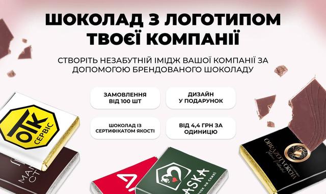 Компанія пропонує унікальний продукт - міні шоколадки з індивідуальним дизайном.