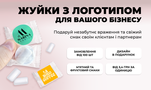 Компанія пропонує унікальний продукт - жуйка з індивідуальним дизайном.
