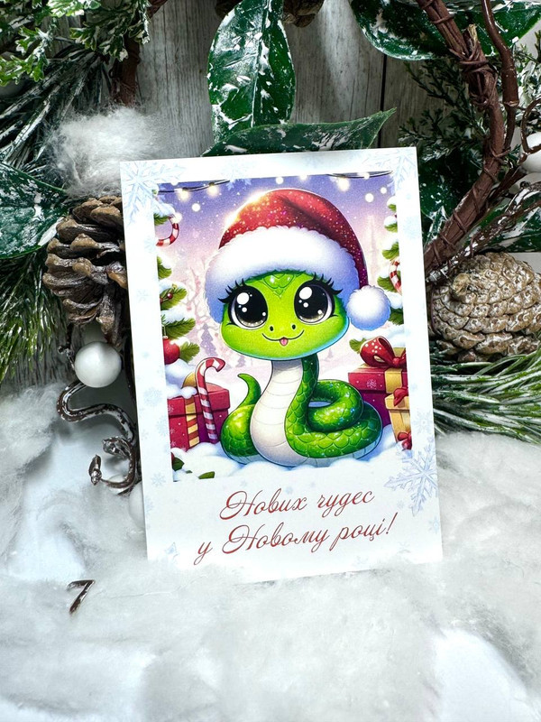 Естетична новорічна листівка зі змією, розмір 100х70 мм